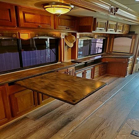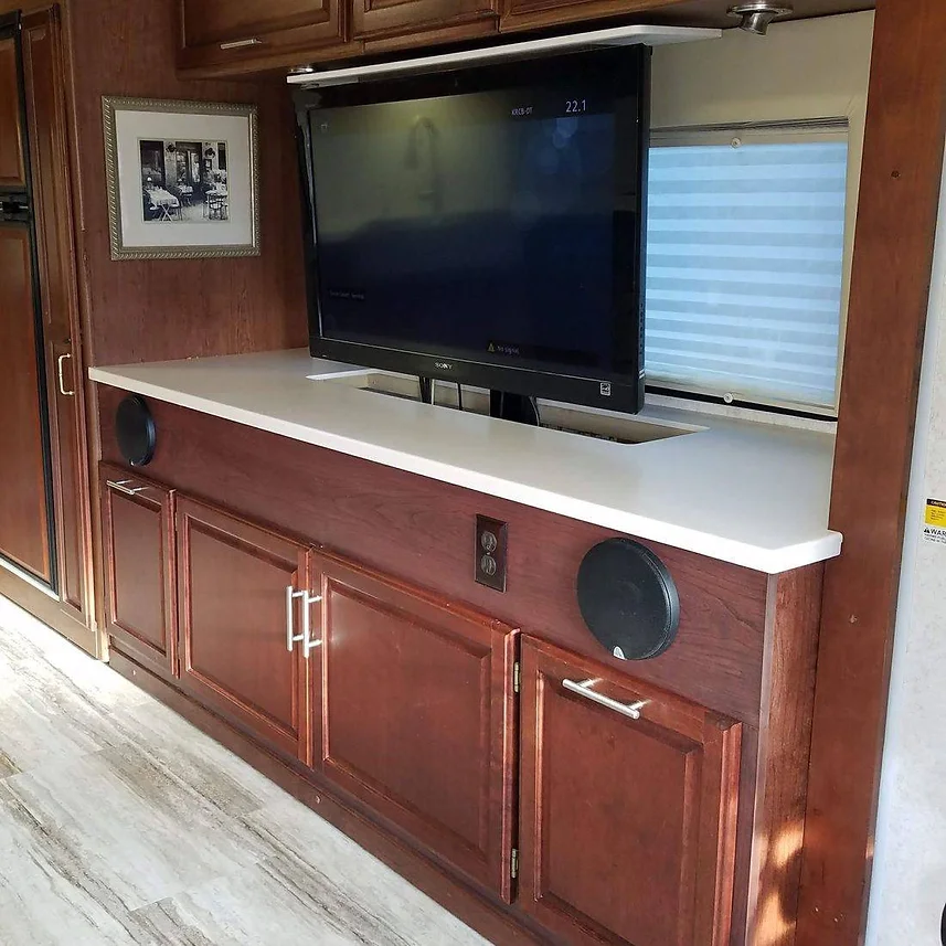 Beyond wood restoration and conditioning, we offer a full range of RV interior services. From custom cabinets and countertops to appliance installation and TV conversions, we are your one-stop-shop for all your RV customization needs.